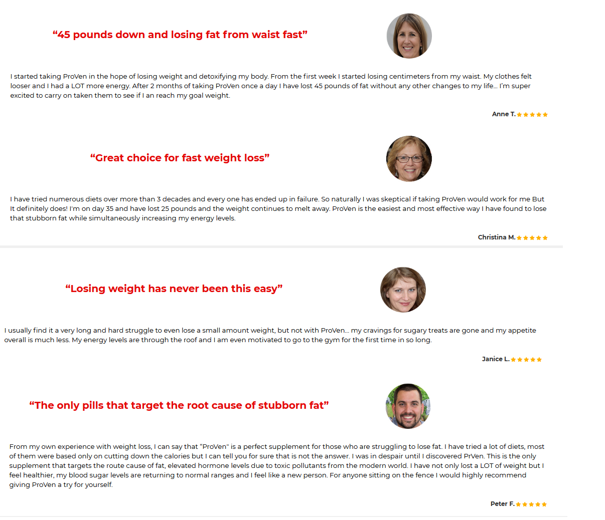 With my own weight-loss experience, I can tell “ProVen” is a great solution for those trying to lose fat.