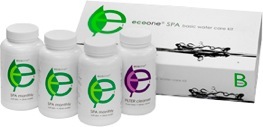 NEW, convenient ecoone® basic spa care kit contains everything you need* to fully maintain your spa for each three month fill cycle and works with most sanitizing systems uising the minimum amount of chemicals possible.